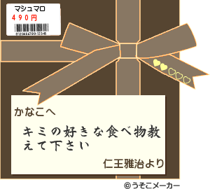 つぶれてしまって見にくいですが、物はマシュマロで値段はまさかの